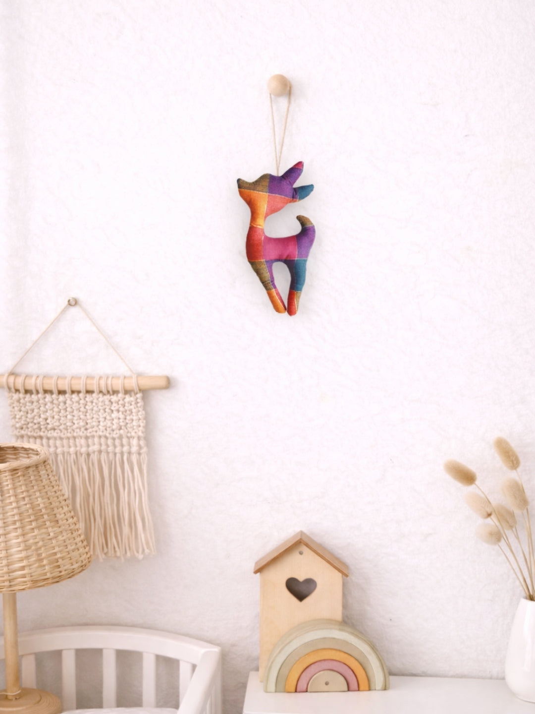 The Deer is an elegant nursery décor accent crafted from surplus cotton fabrics, designed to bring softness and calm to baby rooms.